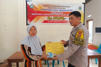 Tribratanewsacehselatan – Kehadiran Bhabinkamtibmas Polsek Tapaktuan Bripka T.M Agus Mardika dalam pemantauan pembagian Bantuan Langsung Tunai Dana Desa (BLT-DD) periode tahap I bulan Januari, Februari dan Maret 2024 ...
